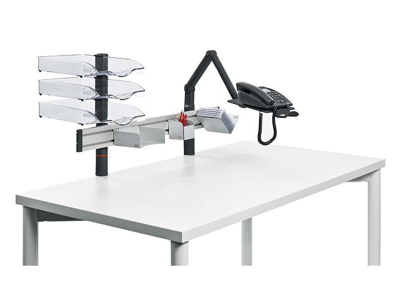 Mit den drei CopySwinger 3 Ablageschalen und den drei Ablageboxen der PuraLine Produktreihe verfügt der Arbeitsplatz beinahe über mehr Ablagefläche, als Sie benötigen werden.